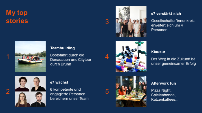 e7 wrapped! Von beeindruckenden Teammomenten bis zu erfolgreicher Projektarbeit werfen wir einen Blick auf die wichtigsten e7-Entwicklungen und Erfolge.