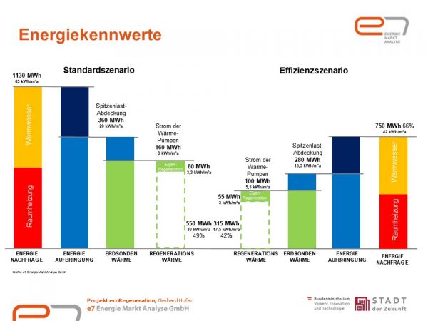 Das Projekt „ecoRegeneration" beschäftigte sich mit dezentraler urbaner Wärmeversorgung und ging der Frage nach, wie Erdwärmesonden bei überwiegender Wärmenutzung in Stadtteilen bewirtschaftet werden müssen, um langfristig effizient nutzbar zu sein.