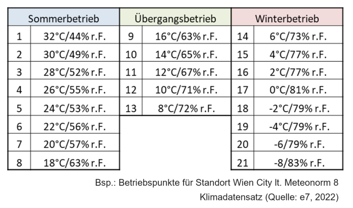 - Leistungsanalyse der Wärme- und Kältebereitstellung für 20-25 Betriebspunkte anstelle von 2 Betriebspunkten (Normaußentemperatur Winter/Sommer)