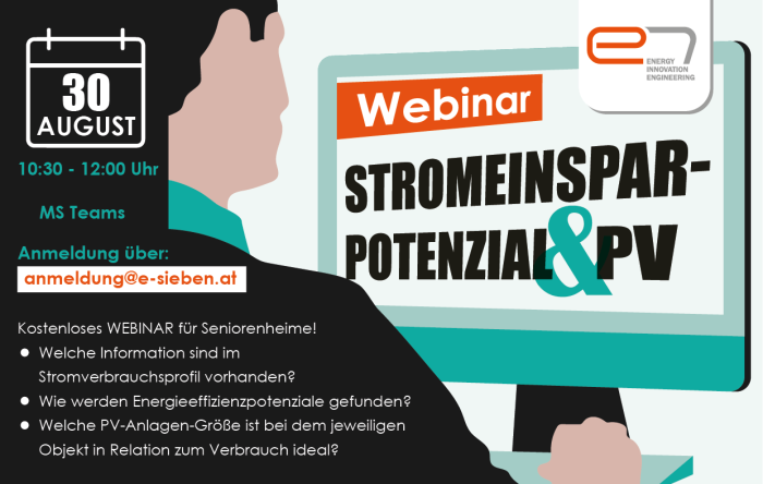 Kostenloses WEBINAR für Seniorenheime! Welche Information sind im Stromverbrauchsprofil vorhanden? Wie werden Energieeffizienzpotenziale gefunden? Welche PV-Anlagen-Größe ist bei dem jeweiligen Objekt in Relation zum Verbrauch ideal?