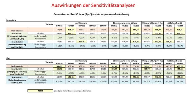 Das ProjektCostOpt verfolgt das Ziel, anhand von drei beispielhaft ausgewählten Referenzgebäuden (größeres Mehrfamilienhaus, kleineres Mehrfamilienhaus und Einfamilienhaus), die als typisch für die Neuerrichtung von Wohngebäuden in Österreich angesehen werden, das kostenoptimale Anforderungsniveau für die thermisch-energetischen Qualität zu ermitteln. Damit steht das Projekt im Zusammenhang mit Art. 5 der Neufassung der EU-Gebäuderichtlinie, die fordert, dass sich die bautechnischen Mindestanforderungen an kostenoptimalen Niveaus zu orientieren haben. Für jedes der drei Referenzgebäude werden jeweils knapp 30 unterschiedliche Ausführungsvarianten unterschieden und hinsichtlich ihrer Gesamtkosten über den gesamten Lebenszyklus untersucht. Als Ergebnis zeigt sich für alle drei Referenzgebäude, dass die Kostenkurven – trotz aller Unterschiede im Detail – äußerst flach verlaufen. Einige besonders energieeffizienten Varianten nähern sich dem Kostenoptimum bereits deutlich an bzw. stellen in Einzelfällen – z.B. Varianten mit thermischer Solarnutzung bei MFH – sogar das Kostenoptimum dar. Die durchgeführten Sensitivitätsanalysen bestätigen das Gesamtbild. Daraus lässt sich ableiten, dass eine weitere Verschärfung des gegenwärtigen bautechnischen Anforderungsniveaus grundsätzlich umsetzbar wäre, ohne dass es dabei zu merklichen Gesamtkostensteigerungen über den Lebenszyklus kommen würde.