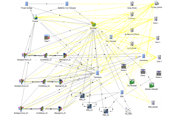 - Dynamische Gebäudesimulation von Referenzräumen mit TRNSYS hinsichtlich thermischen Komforts, Energiebedarf und max. Heiz- bzw. Kühlleistung